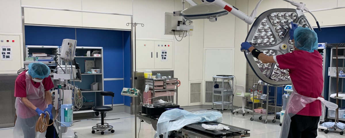 医療機関に専門スタッフが駐在して行う「院内滅菌消毒業務」を中心に、医療器材の回収、洗浄、消毒、包装、滅菌、保管、搬送、まで行います。また清潔エリアにおける環境管理として、手術室後の手術室内の清掃、手術部エリアの全般の清掃作業等を行い、手術部と連携して安全・安心・確実なサービスを提供します。